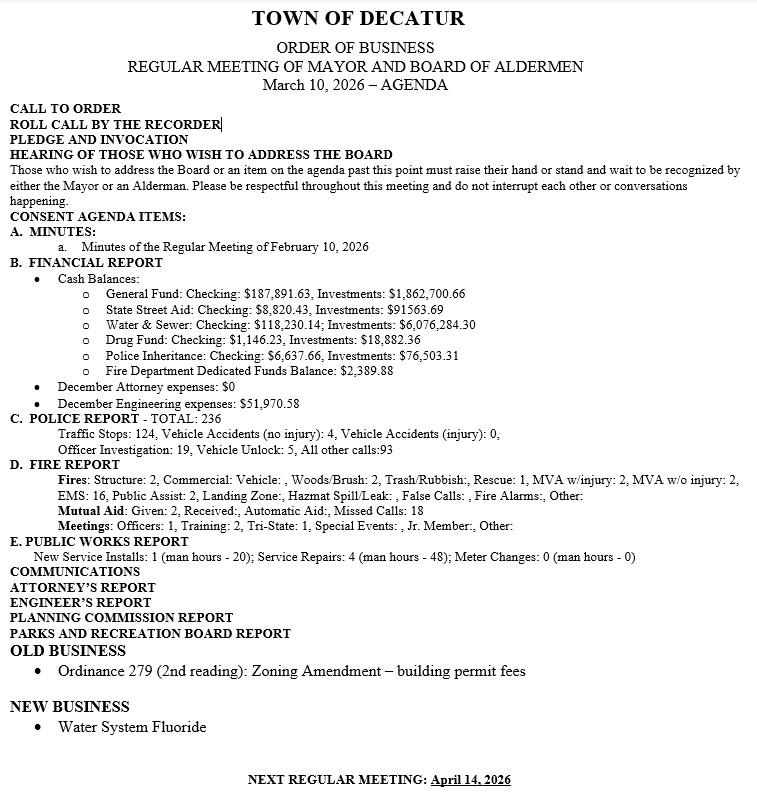 Town of Decatur Information